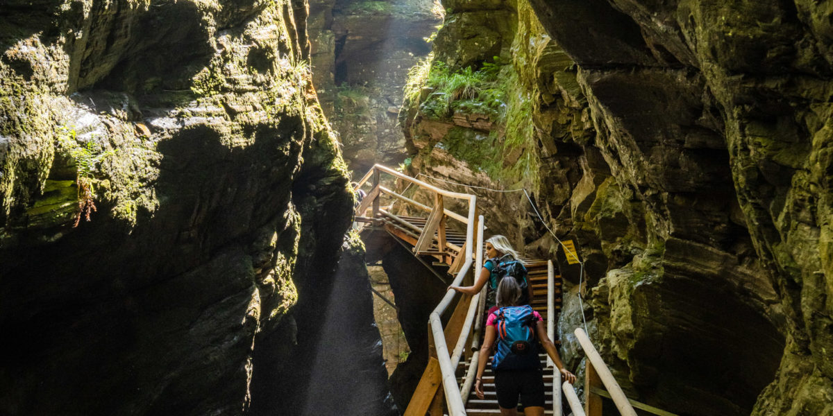 “Eine Jungfrau auf der Flucht vor dem Teufel …” Wenn eine Geschichte so beginnt, kann sie nur gut sein. Jedenfalls: die flüchtende Jungfrau gelangt zu einem Abgrund und springt. Doch sie stürzt nicht in den Tod, sondern wird von Engeln getragen und überlebt, während der Teufel dumm aus der Wäsche guckt. Heute stürzen an der Stelle die Wassermassen des Zopenitzenbaches 130 Meter zu Tal und formen den atemberaubenden “Jungfernsprung”. Einen Wasser-Wunder-Weg mit Top-Aussicht gibt es inklusive.